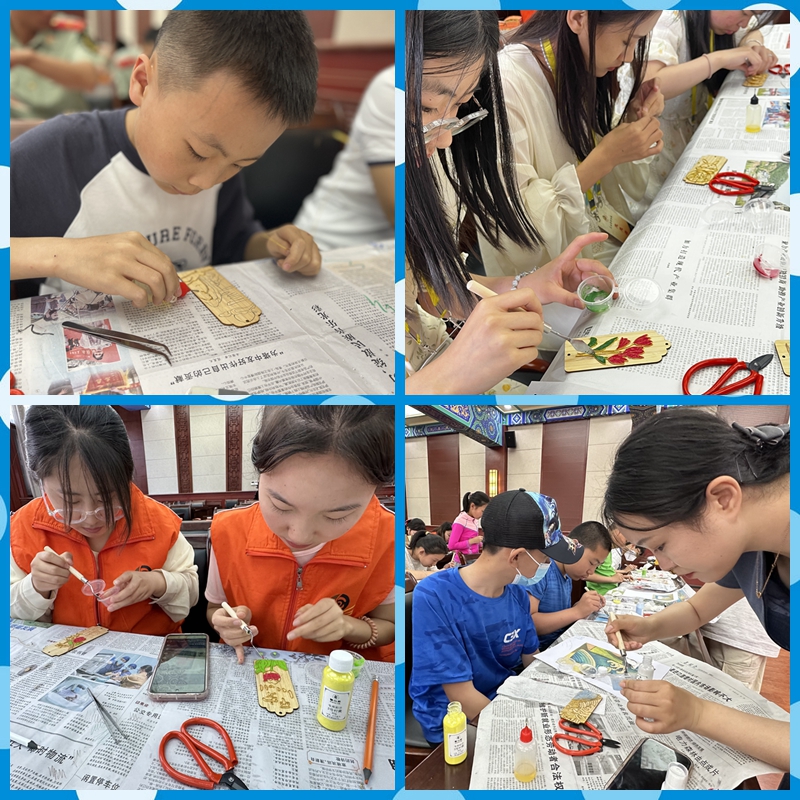 活动中,宣教员为青少年播放了脊兽动画视频,讲解了建筑中的脊兽故事,带领大家实地参观伏羲庙,仔细观察了核心建筑先天殿、太极殿上方的脊兽造型。同时,介绍了省级非遗项目——甘谷脊兽的历史渊源、文化内涵及非遗制作工艺。最后,指导青少年运用非遗掐丝工艺制作文创脊兽书签,加深对脊兽知识和甘谷脊兽非遗技艺的印象。